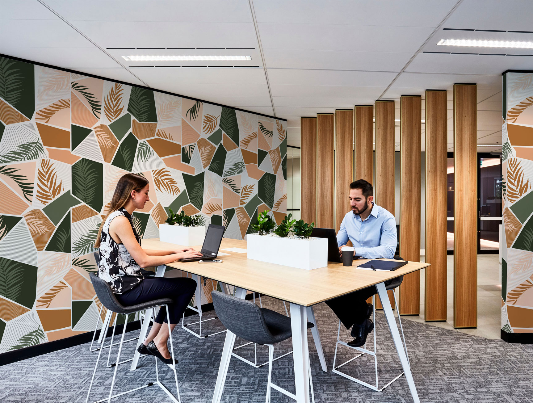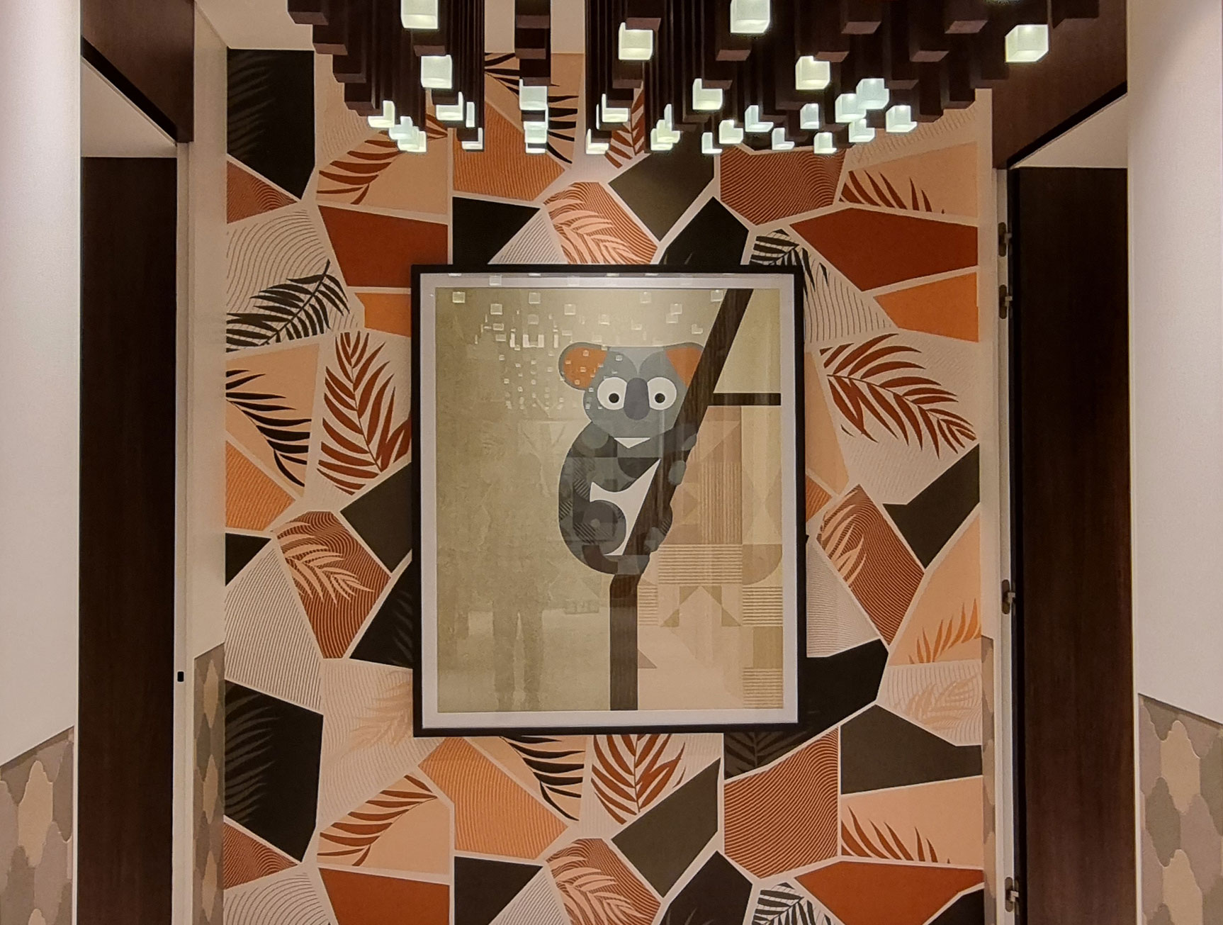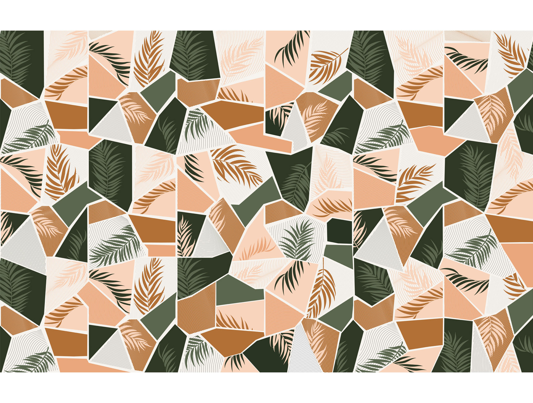 Elevate any space with our geometric wallpaper featuring leaves that add texture and depth. Its versatile design works beautifully in both commercial and residential settings, with usage in Dubai Mall as well.