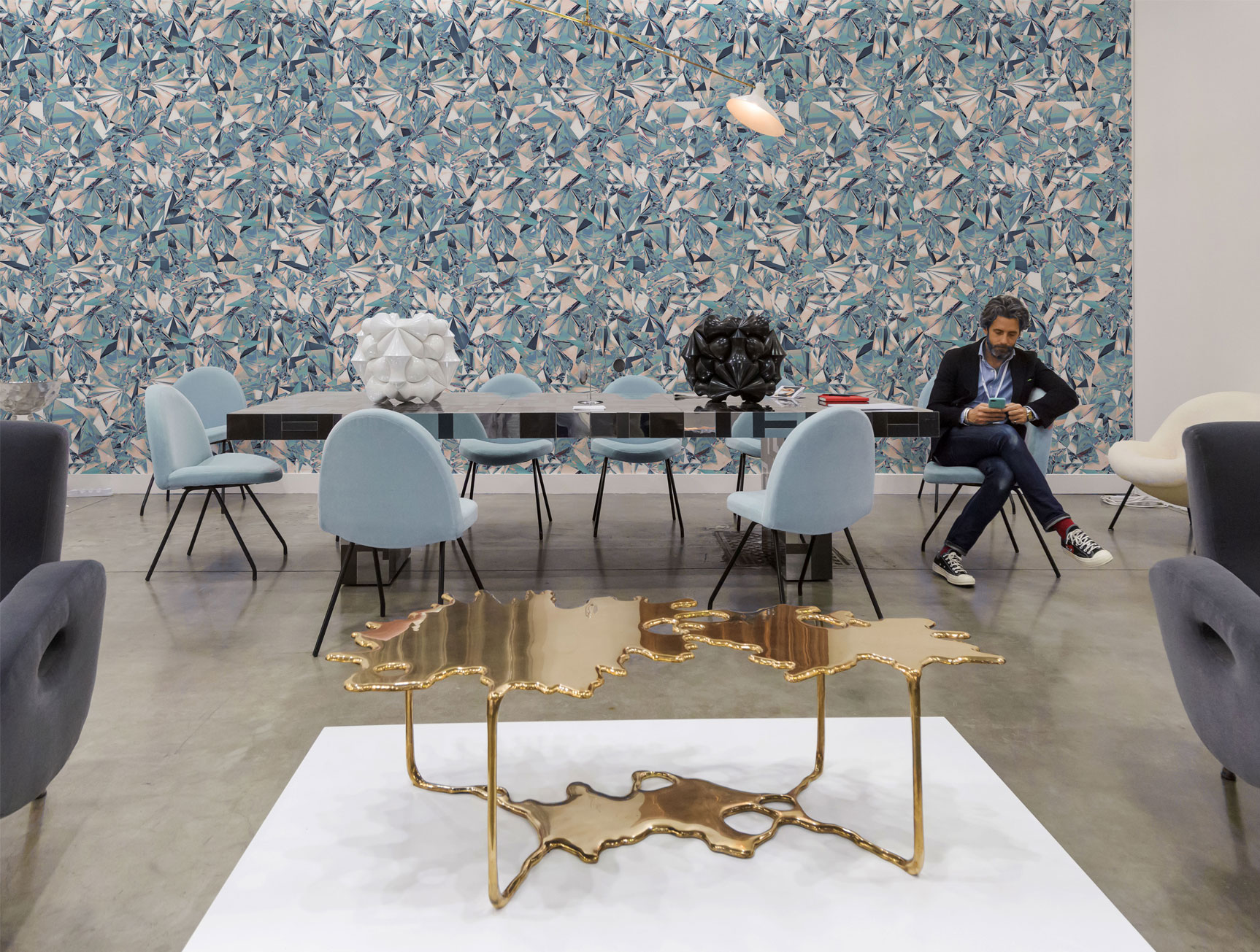 Elevate your interior with our luxurious wallpaper inspired by gemstone reflections. Featuring rich blue tones and elegant geometric patterns, perfect for modern, luxurious spaces.