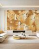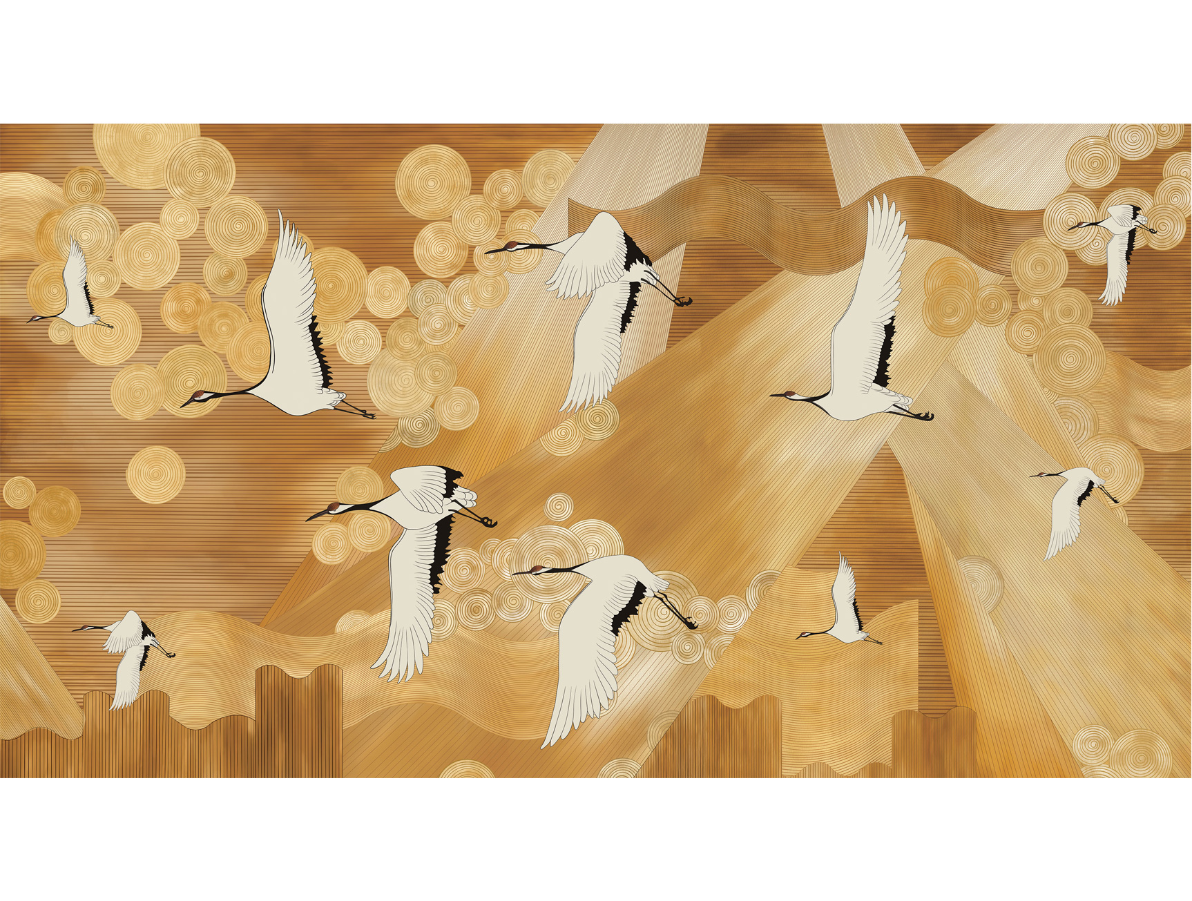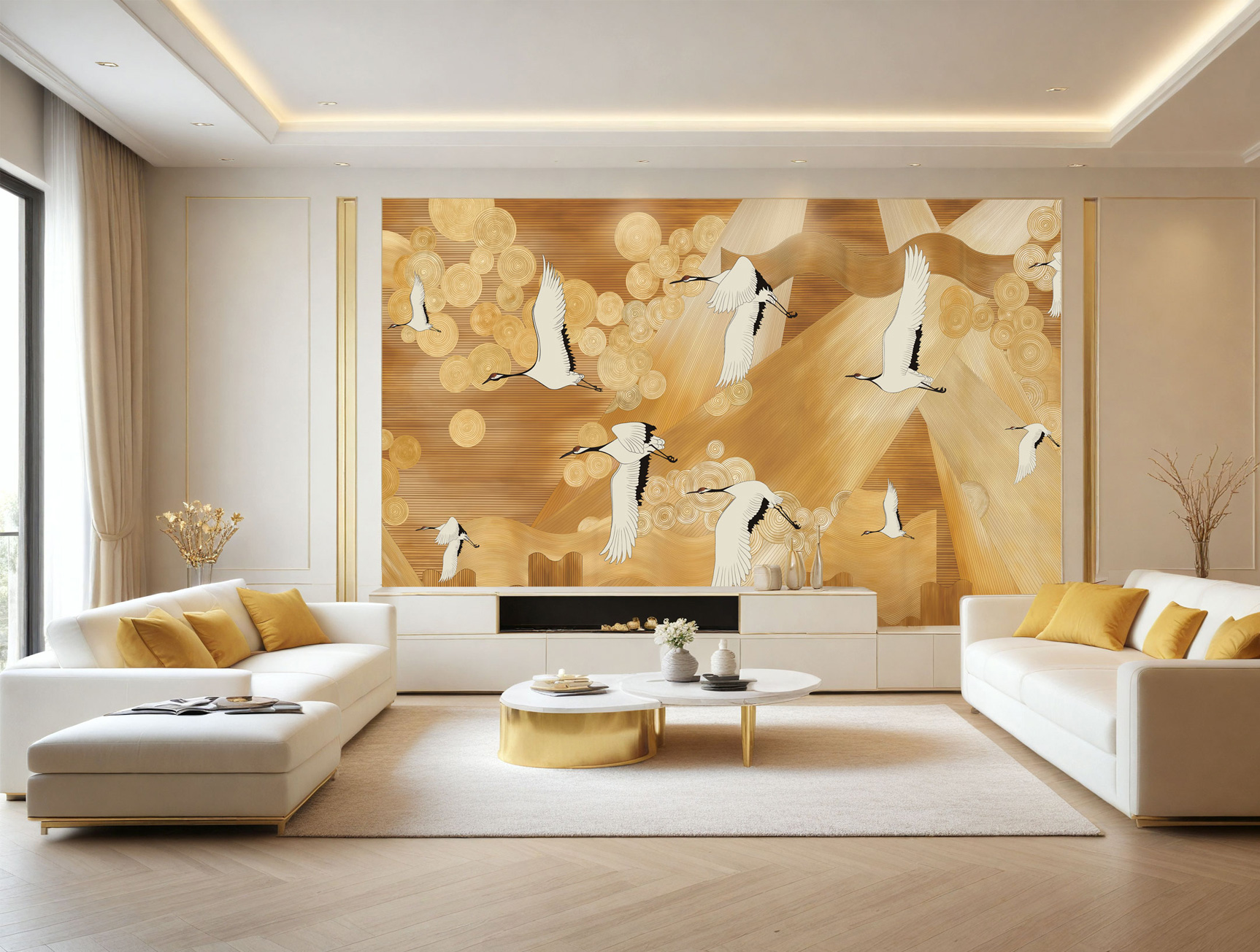 Abstract Wall Art with Flying Birds in Golden Tones – Elegant Indoor Decor