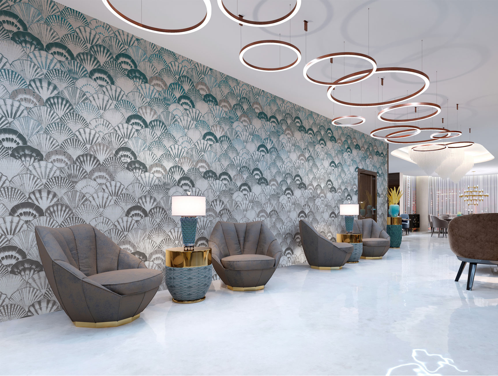 Gray and blue shell mosaic design.