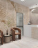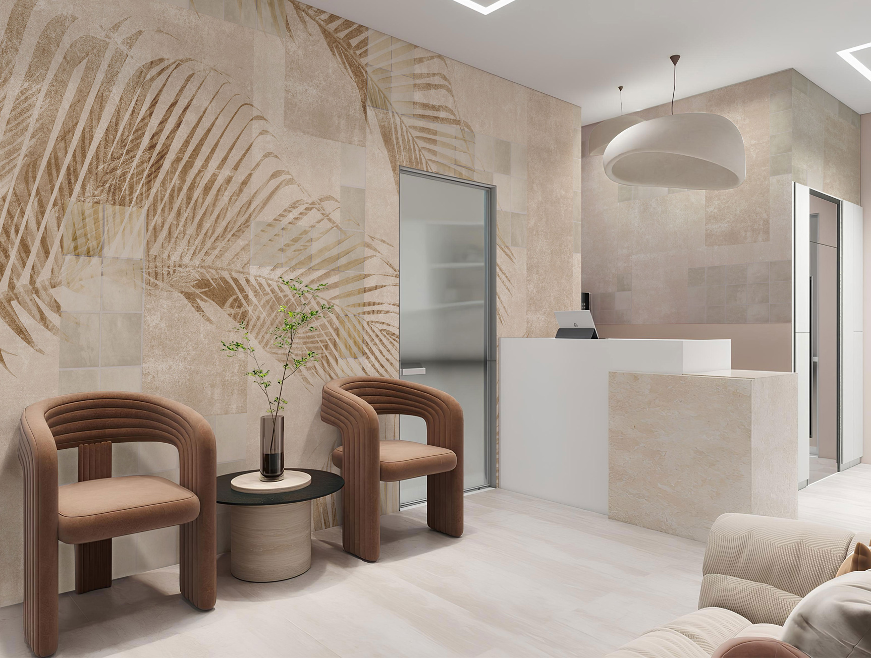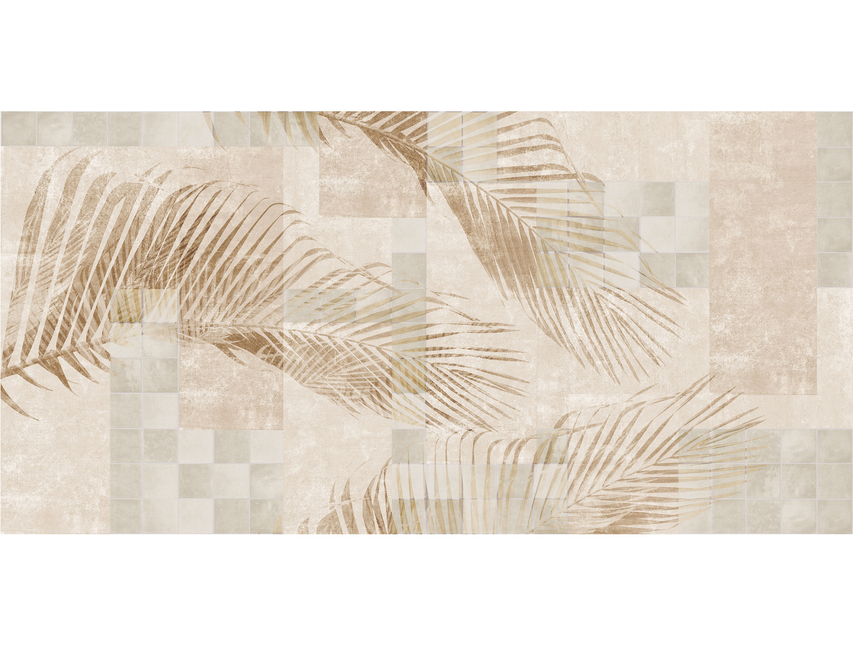 Beige tile patterns with palm-like leaves for elegant spaces.